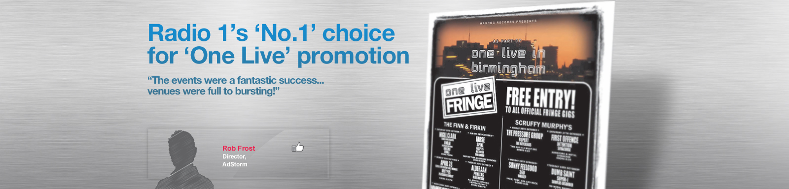 AdStorm also devised a cross media advertising campaign designed to tap into the motivations of young people, including posters, flyers, and advertisements as well as direct mail for email, drawing strongly from Radio 1’s existing “One Live” branding, to ensure consistency.